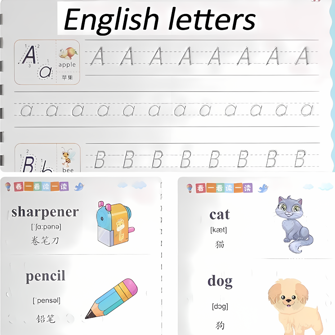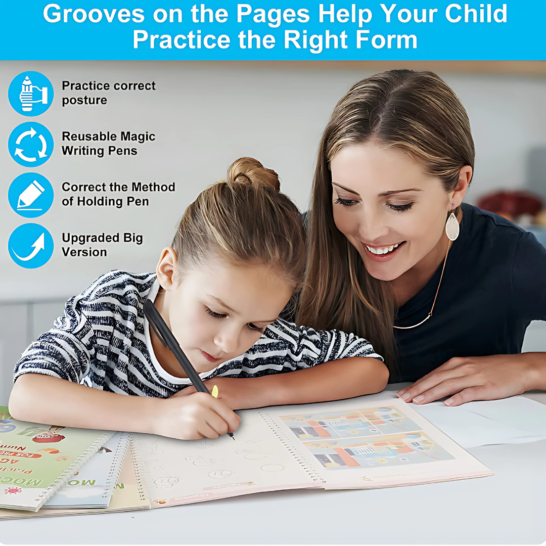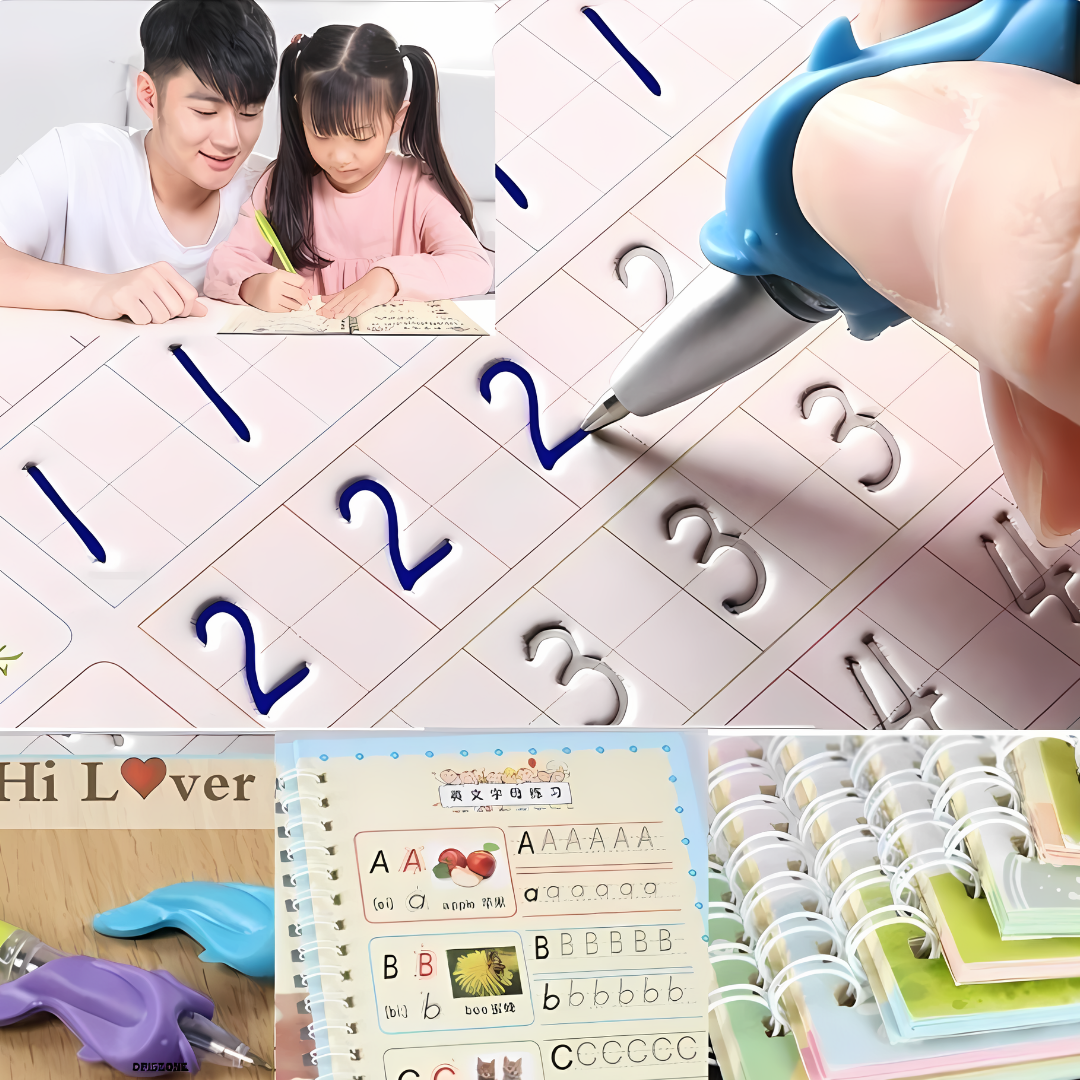 Magic Ink With New Technology COMFORATBLE WRITING DESIGN: This is a Magic Copybook that can help children improve their handwriting by demonstrating correct posture. It has a silicone pen holder, which facilitates children to master the method of holding a pen. The Magic Copybook can help children practice their handwriting and have fun at the same time!